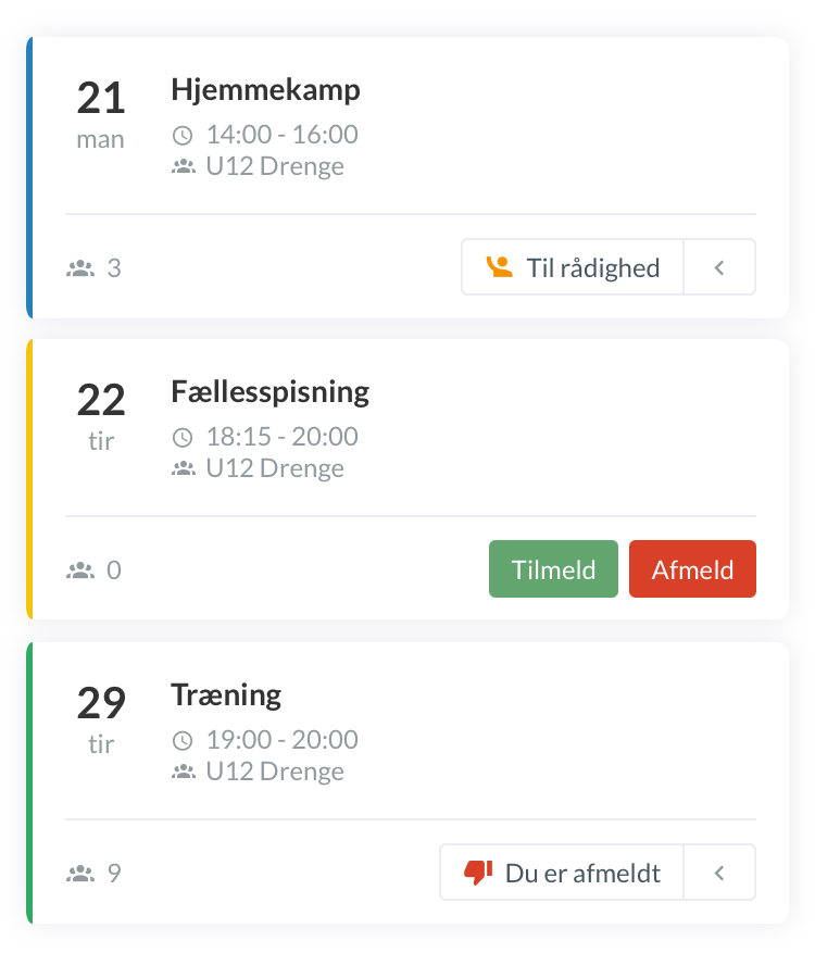 - Enkel måte å synliggjøre forskjellige former for aktiviteter i lagets kalender/i oversikten